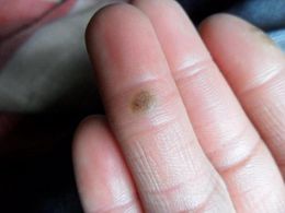 寻常疣好发于手、足部,开始为单个,可因自身接种而增多。皮损为圆形或多角形的丘疹,从针尖到花生大小,灰黄、污褐色或正常肤色,周围无红晕,表面粗糙,角化明显,呈花蕊或刺状,触之稍硬,有刺手感,但不会像刺猬的硬毛那么尖硬。